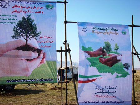 طی مراسمی طرح بسیج نهالکاری همگانی، برای ایرانی سرسبز با حضور دکتر کامران پورمقدم رئیس شورایعالی جنگل، مرتع و آبخیزداری سازمان جنگل ها، مهندس احمد طاهری مدیرکل منابع طبیعی و آبخیزداری استان تهران، سجاد برنجی فرماندار شهرستان ملارد و تعدادی از مسئولان استانی و شهرستانی و مشارکت جمع زیادی از اعضای تشکل های مردمی دوستدار طبیعت، دستگاه های اجرائی و اقشار مختلف مردم در منطقه اخترآباد شهرستان ملارد برگزار و 61هزار بوته آتریپلکس به زمین هدیه شد که به روایت تصویر تقدیم می شود.