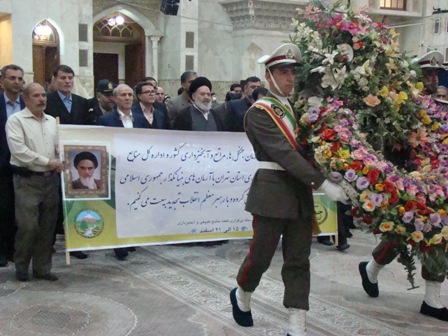 در این مراسم شرکت کنندگان با نثار تاج گل و قرائت فاتحه، به مقام شامخ معمار کبیر انقلاب اسلامی و شهدای گرانقدر ادای احترام کردند.