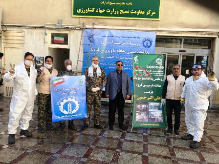 وی ادامه داد: در این رزمایش بسیجیان منابع طبیعی استان تهران در قالب گروه جهادی حیدریون با امکانات و تجهیزات لازم علاوه بر توزیع اقلام بهداشتی و مواد ضدعفونی کننده، عمیلات ضدعفونی ساختمان ها و محوطه های وزارت جهاد کشاورزی و محیط داخلی و بیرونی اداره کل منابع طبیعی و آبخیزداری استان تهران را انجام دادند و به اقداماتی همچون تب سنجی مراجعان و همکاران این اداره کل نیز پرداختند.